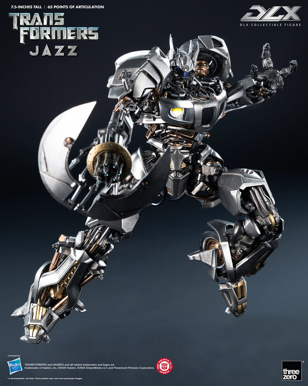From the live-action film Transformers (2007), Jazz – Optimus Prime’s second-in-command – makes his debut in the threezero DLX series! Meticulously crafted by threezero’s new R&D team, this figure stays true to the movie’s design while adding excellent tactile quality and high playability to the legendary character.