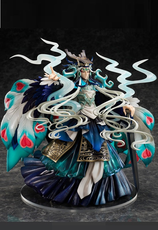 Aniplex+ is proud to present Fate/Grand Order’s Qin, the Son of Heaven and emperor of China. Standing at a towering 13” (33cm), the elaborate sculpt of this figure truly captures the essence of Qin’s imperial solemnity. Qin’s dress, armor, crown, and sword are all crafted in exquisite detail. The wings adorning Qin’s back are sculpted in two layers and painted in beautiful patterns. Multiple layers of clothing are visible under these wings as well. An elegant, dynamic finish to the hair and clothing brings Qin’s majesty to life right before your very eyes. Finally, clear components are used to construct the corners and mercury framing Qin’s head, as well as for the wings on both arms in order to truly draw out the emperor’s splendor. This noble, dignified emperor gazes upon you with all the regal charm and gravity one could expect. Seize this opportunity to bring Qin to your Chaldea right away!