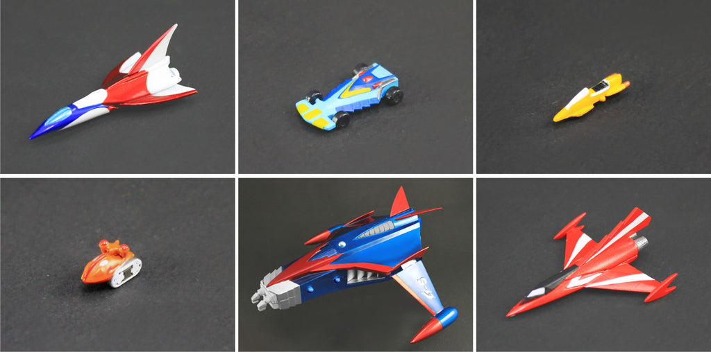 Figure(GOD PHOENIX) x 1, Nose parts(with Gimic) x 1 set, G-Mecha.(G-1, G-2, G-3, G-4) x 1 each, Display stand x 1, Effect parts(Fire bird) x 1, Red Inpulse's fighter x 1
