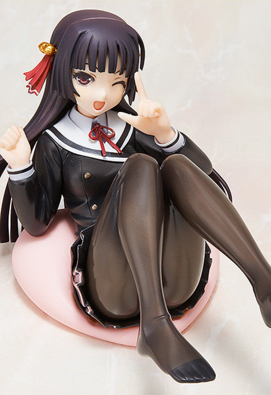 She is sculpted wearing her St. Liliana High School uniform, and also comes with alternate arm parts allowing for a slightly different pose! She is in a cute sitting pose on a heart-shaped cushion, sure to draw stares from not only her brother, but from fans of the series too!