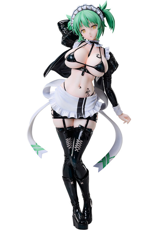 From "Shinobi Master Senran Kagura: New Link" comes a 1/4 scale figure of Hikage, measuring an impressive 400mm tall! This model is based on a Senran Kagura × Don Quijote collaboration illustration featuring Hikage in a bondage maid outfit, faithfully capturing character designer and illustrator Minami Yaegashi’s work in figure form. Hikage's outfit, which blends the contrasting themes of bondage and maids, has been meticulously recreated down to the texture and intricate details. Her graceful poses and the intricate details of her bondage maid outfit highlight a striking presence that only a 1/4‑scale figure can achieve. Discover a new side of Hikage through this exquisitely crafted figure.