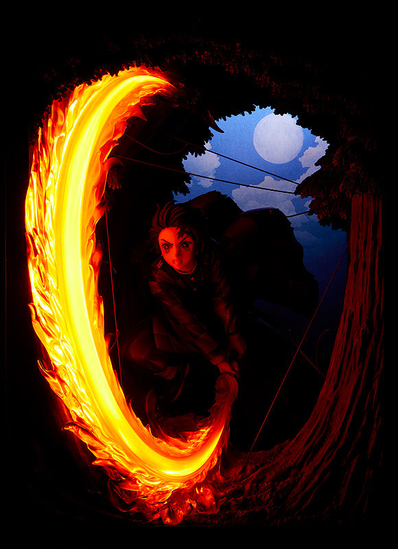Tanjiro has been faithfully captured in figure form in his appearance from the 19th episode of the anime's first season, using the Hinokami Kagura Dance technique for the first time. Even the background from the scene has been preserved in figure form.