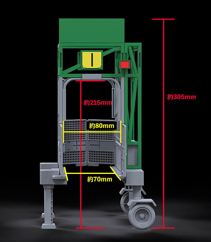 Assemblable non-scale plastic model with stickers included. Approximately 305mm in height (including panels). Inside of gate approximately 215mm in height when using long support pillars and 175mm in height when using short support pillars.