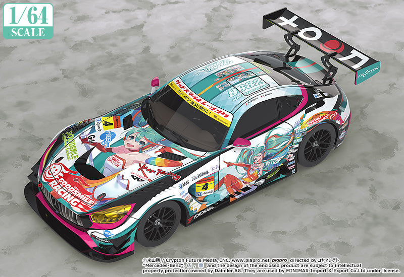 The Good Smile Hatsune Miku AMG that raced in the SUPER GT GT300 class in 2016 is now a highly collectible 1/64 scale miniature car! Mai Yoneyama's adorable Racing Miku 2016 Ver. illustrations and the innovative color scheme have been faithfully included on the design. The body has been recreated using die-cast materials. Collect all of the GOODSMILE RACING race cars from throughout the years!