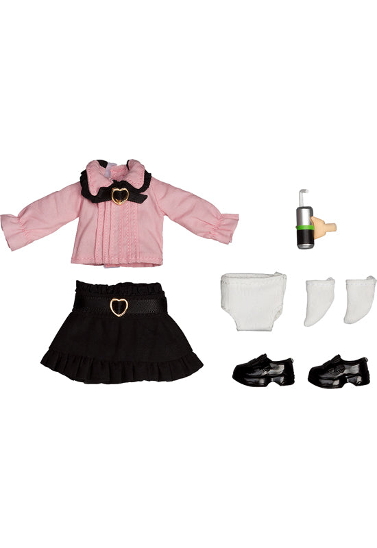 Introducing a ryosangata outfit set! Presenting a ryosangata fashion inspired outfit set for use with your Nendoroid Dolls! Mix and match with your Nendoroid Dolls! Set includes · Blouse · Skirt · Underwear · Sneakers (with magnets in soles) · Energy drink + hand parts *Please note that actual figure is not included.