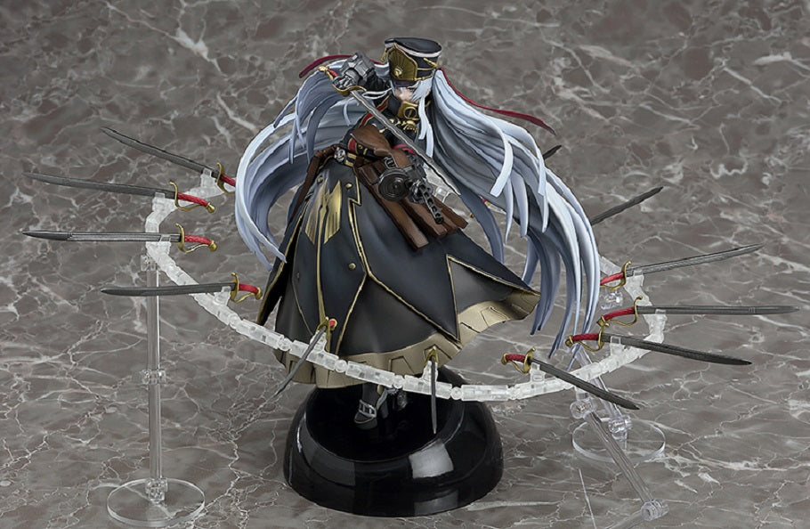 From the anime series "Re:CREATORS" comes a 1/8th scale figure of the "Military Uniform Princess" Altair! The figure has been sculpted in an original pose with Altair holding her iconic drum magazine machine gun and saber at the ready with close supervision by the writer and character designer of the series, Rei Hiroe. Her hair and outfit have been sculpted whirling around which gives the figure an impressive size for a 1/8th scale figure.