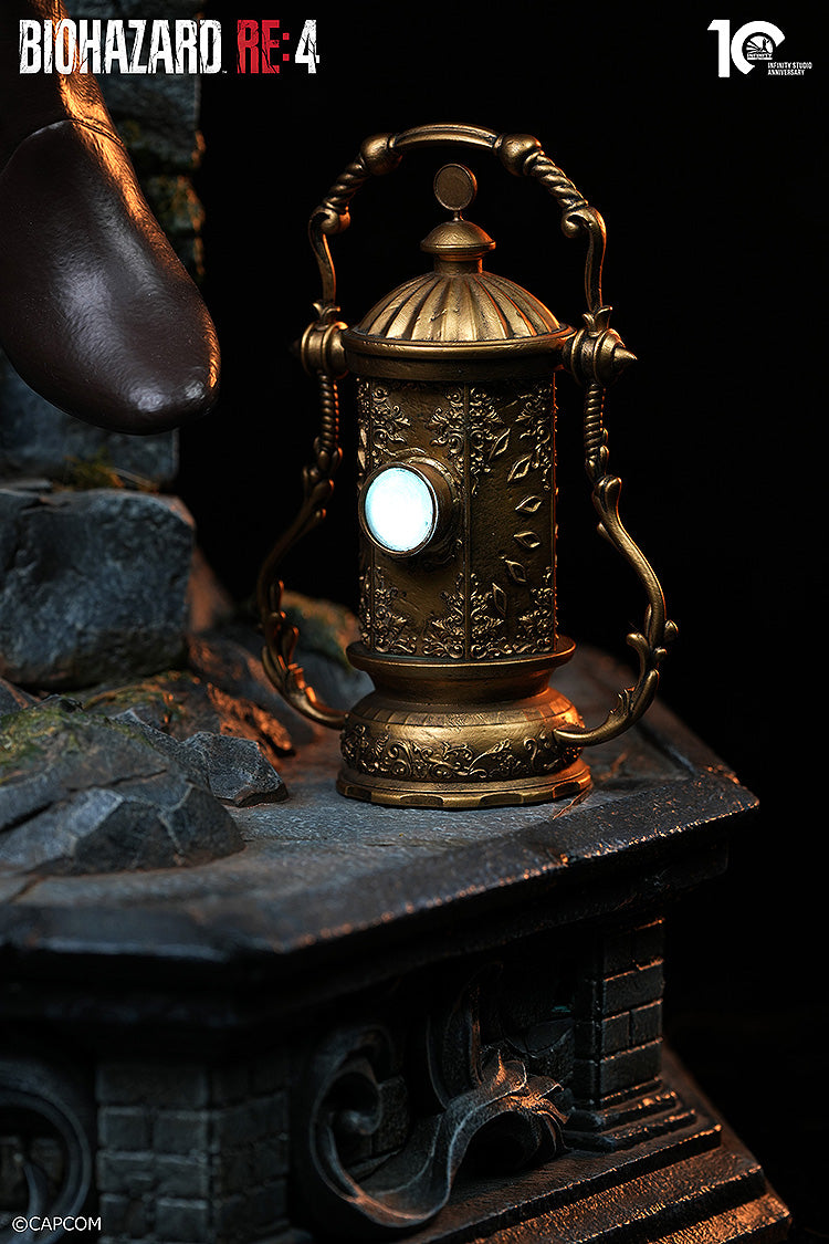 From the game "Resident Evil RE:4" comes a 1/2 scale figure of Ashley Graham! Ashley's hair is made with milk fiber and her skin is made with platinum silicone. Her outfit is made with actual fabric material for a more realistic texture. The base of the figure features candles and lanterns with built-in LED lights, perfectly capturing the atmosphere of the game in figure form.