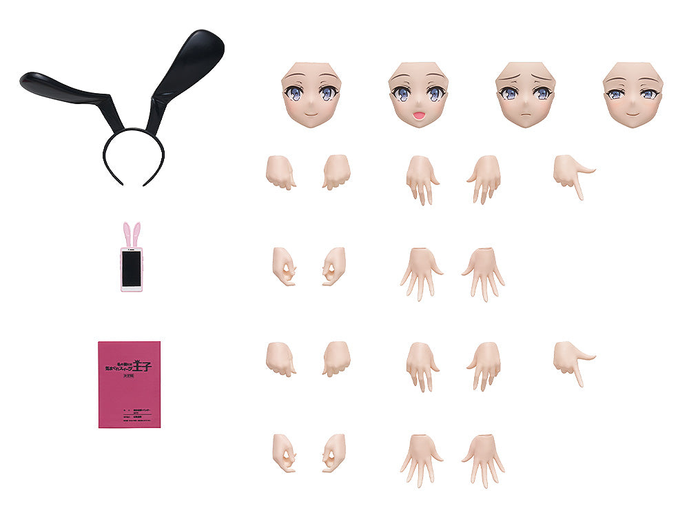 ・Optional parts such as a smartphone, Bunny ear headband (for holding), script, five types of hand parts, five types of summer uniform hand parts, and display pedestals are included.