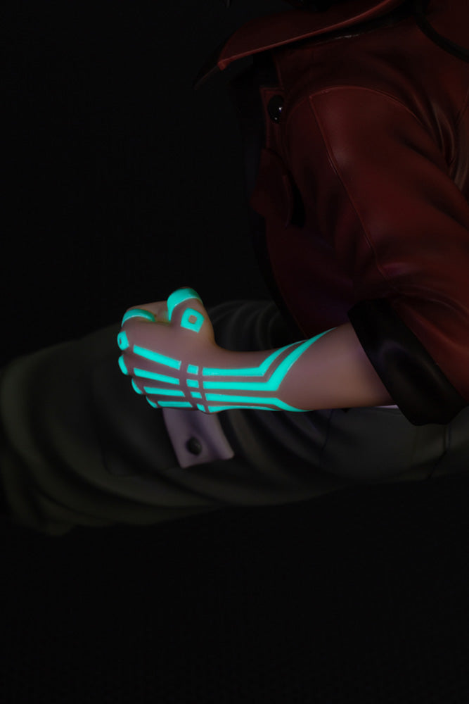 Shiki's Ether Gear is also faithfully recreated. The parts are painted with fluorescent paint that shines under a blacklight.