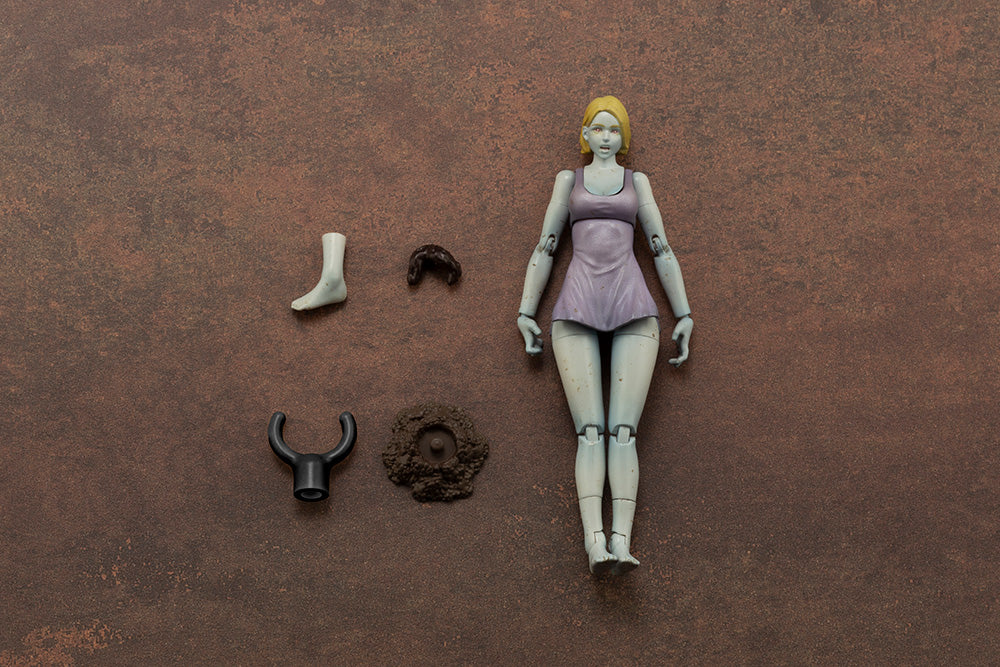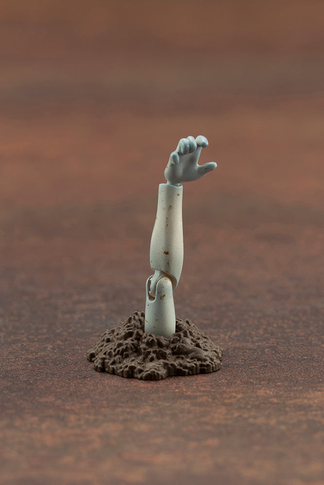 WRETCHED GIRL and FALLEN QUEEN both come with a dirt mound effect part, which can be connected with an arm unit removed from the main body to recreate a scene where the zombie thrusts their arm in the air to crawl out of the ground. The dirt mound effect part is also compatible with the arms of ZOMBINOID AGONY and BITER.