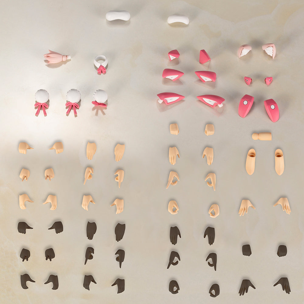 In addition to the five types of hand parts from the original Innocentia kit, Laetitia includes six new types of hand parts including heart hands, a thumbs up, a pointing hand, peace signs, saluting hands, and hands for supporting a weapon.