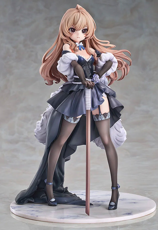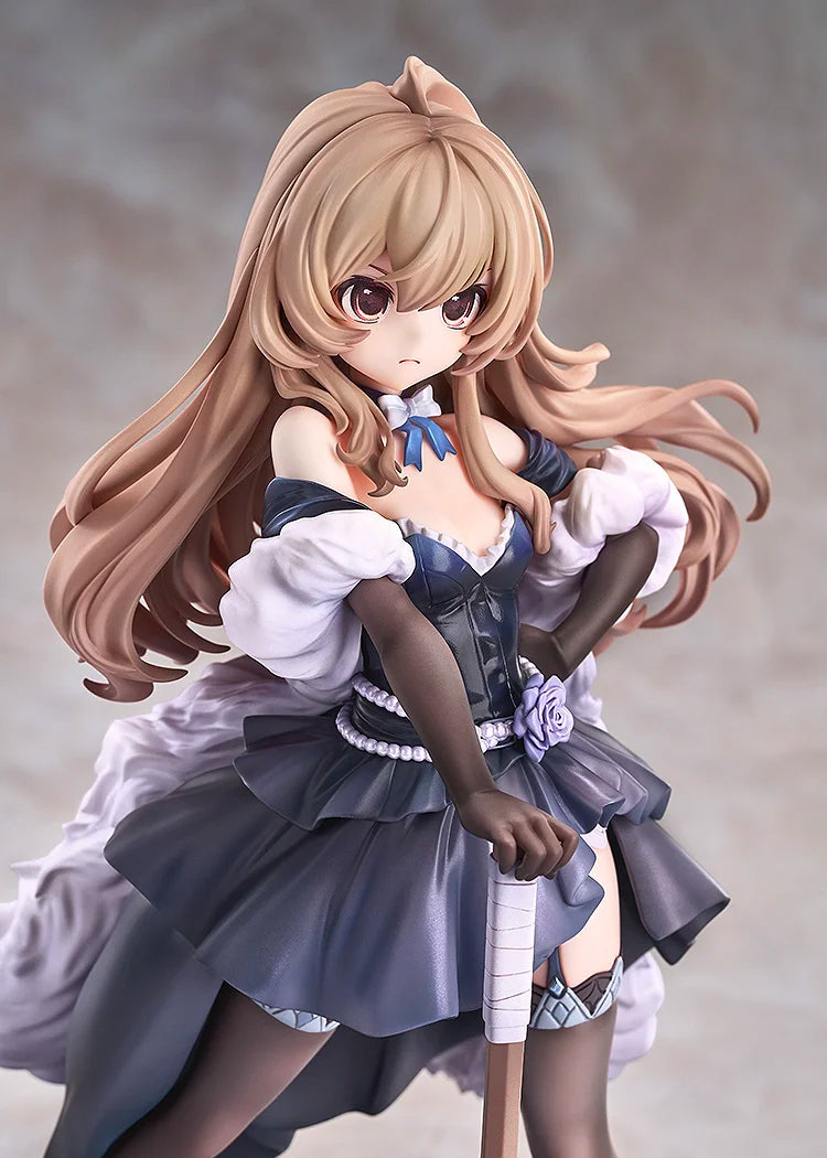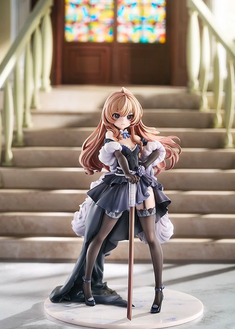 From the popular anime series "Toradora!" comes a new scale figure of Taiga Aisaka! Taiga is sculpted wearing a voluminous and frilly dress that gives the impressive figure a glossy and delicate appearance. Taiga is posed equipped with a wooden sword for a dignified look! The purple base of the figure is decorated with pearls, and the fur around the waist adds to the luxurious appeal of the figure. Be sure to add Taiga Aisaka: Dress Ver. to your collection!