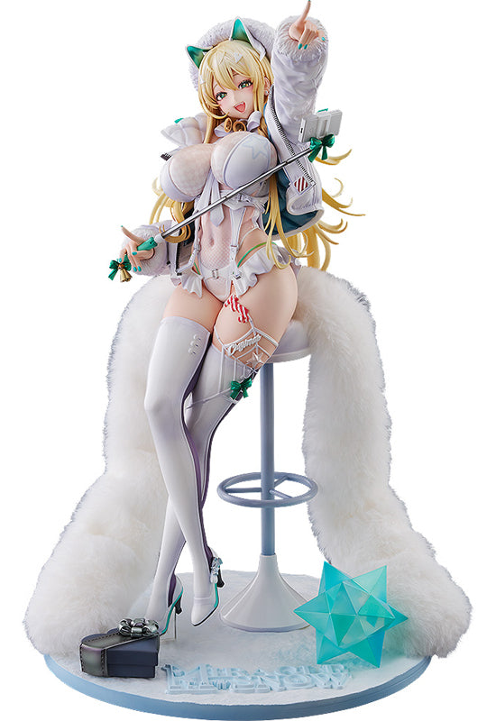 From the RPG "GODDESS OF VICTORY: NIKKE" comes a scale figure of Rupee, a member of Tetra's Talentum squad, dressed in a special snowy white Santa Claus outfit! The illustration of Rupee sitting in a chair with her selfie stick in hand has been faithfully captured in figure form. The figure shows off the bold design of her outfit and her curvaceous physique. From Rupee's lustrous outfit to the delicate patterns on her socks and accessories, every detail has been meticulously sculpted. The luxurious sheer white fur also adds a gorgeous holiday-themed touch. Be sure to add this figure of Rupee to your collection and make your holiday wishes come true!