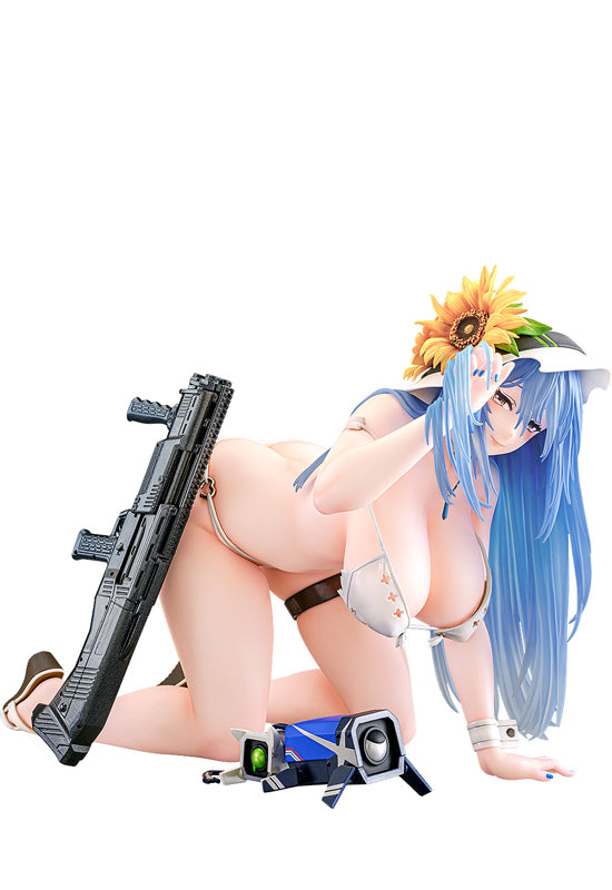 "The sea reminds me of many fairy tales..." From the popular smartphone game "Girls' Frontline" comes a 1/6 scale figure of the shotgun T-Doll DP-12! DP-12 has been captured in figure form based on the heavy damage version of her "Morning Fable" skin. Her swimsuit accentuates her beautiful curves, while her alluring pose and facial expression draw further attention. The sexy appeal of the skin has been taken to the absolute limit. Her shotgun, faithfully modeled in scale figure size, and her hat can be moved independently, allowing you to display them however you would like. Two chibified Dinergates sit on the figure's base as well—another detail you won't want to miss!