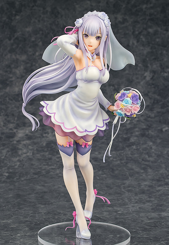 She has been sculpted wearing a wedding outfit that matches beautifully with the previously released Rem: Wedding Ver. and Ram: Wedding Ver.!