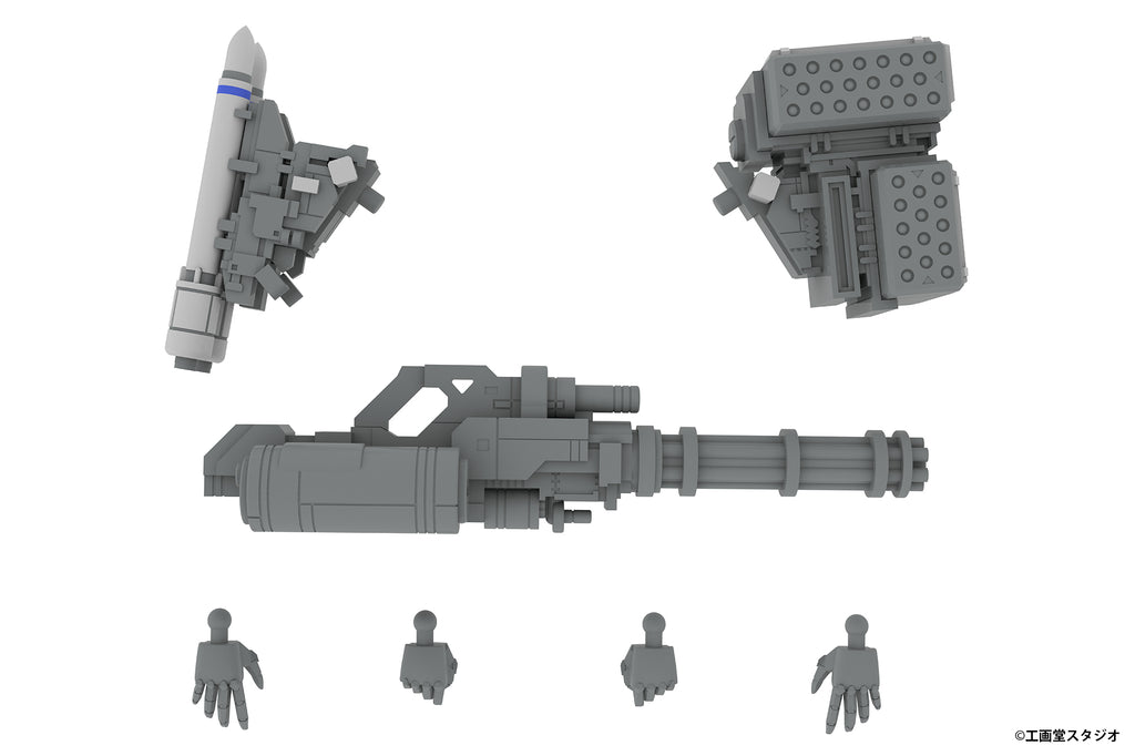 This set includes a DRu35 MLC, R25 rocket, M7A Gatling gun, open hands (left and right), and gripping hands (left and right).