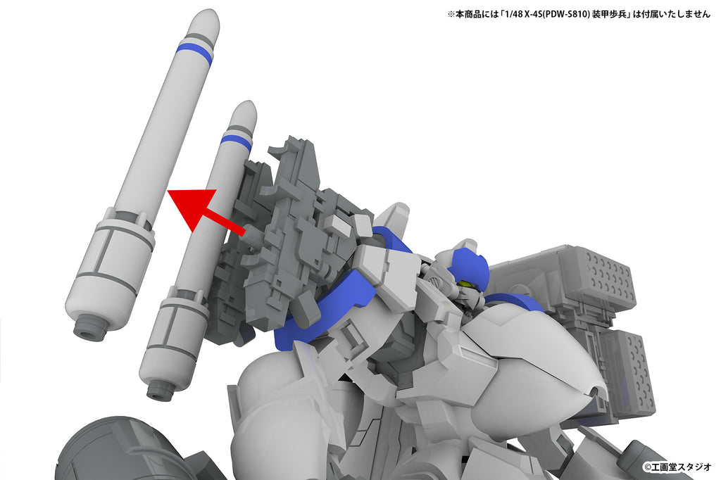 The shoulder weapons use 3mm shafts for easy attachment, removal, and left-right flipping.