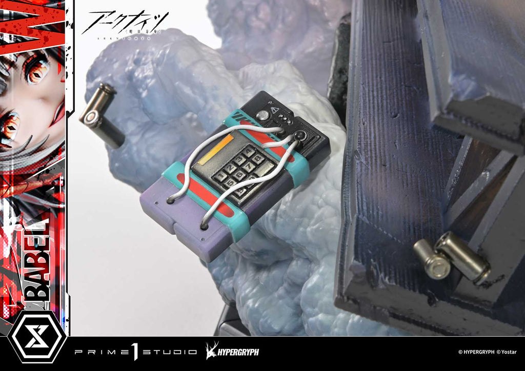 The explosive backdrop has been artfully arranged to deliver maximum impact while remaining ideal for display. Layers of textured and gradated smoke recreate the swelling air and lingering shock of the blast, while the stylized steel beams add a bold visual rhythm. Grenades and bombs reminiscent of her tactical arsenal complete the composition, forming a vivid image of destruction frozen in motion.