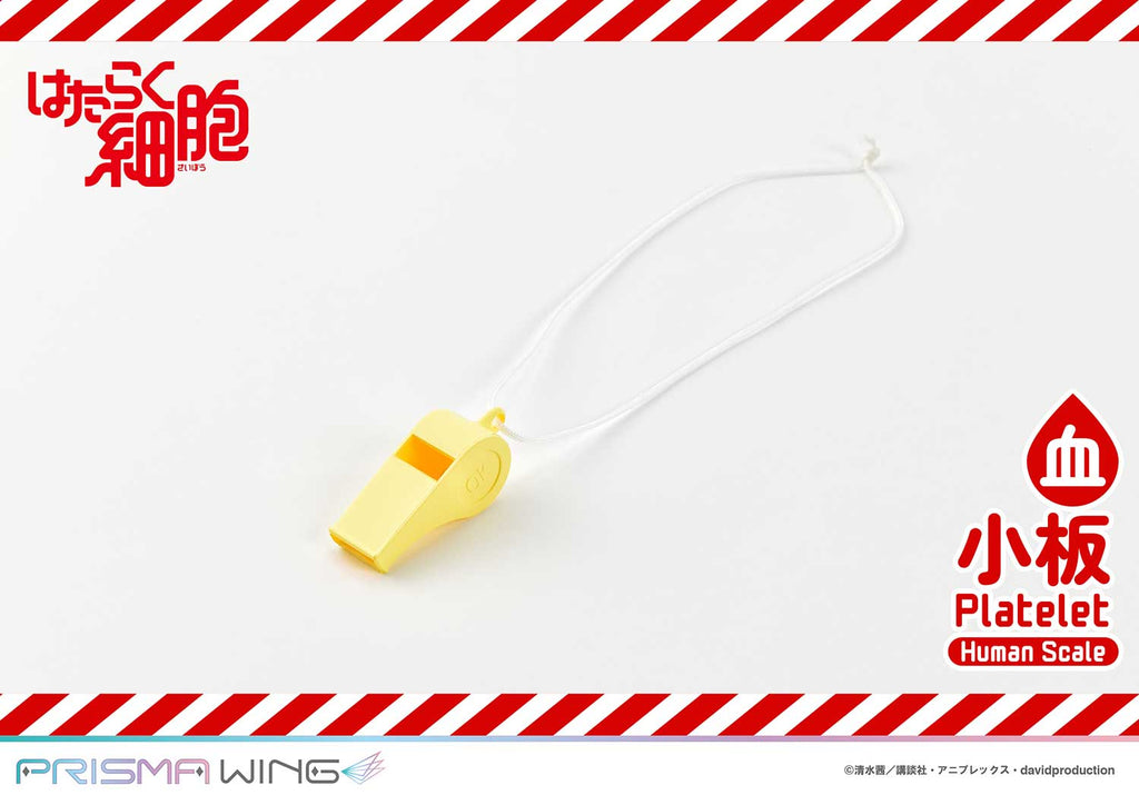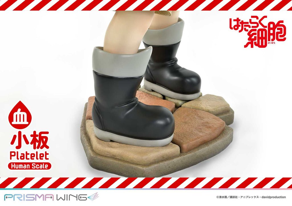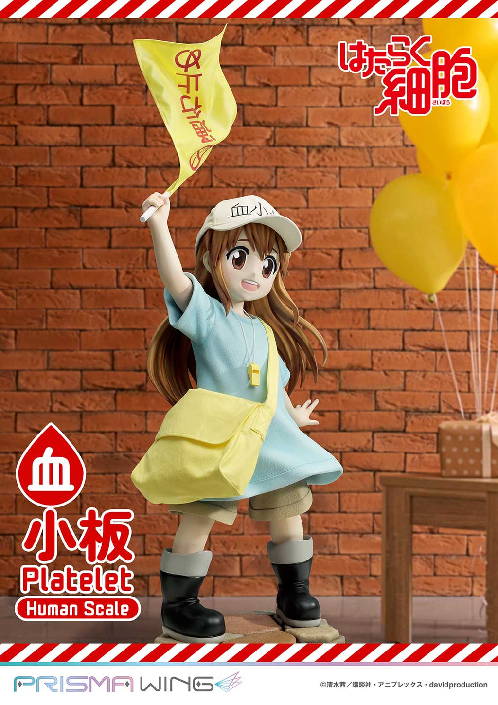 Platelet from the TV anime "Cells at Work" makes her debut in the Life Scale Masterline lineup! Known for her small size compared to other cells, she rushes to gather and block the wounds and stop them from bleeding when blood vessels are damaged. Her earnest and adorable charm is captured in stunning detail at a delightful human scale 100cm.