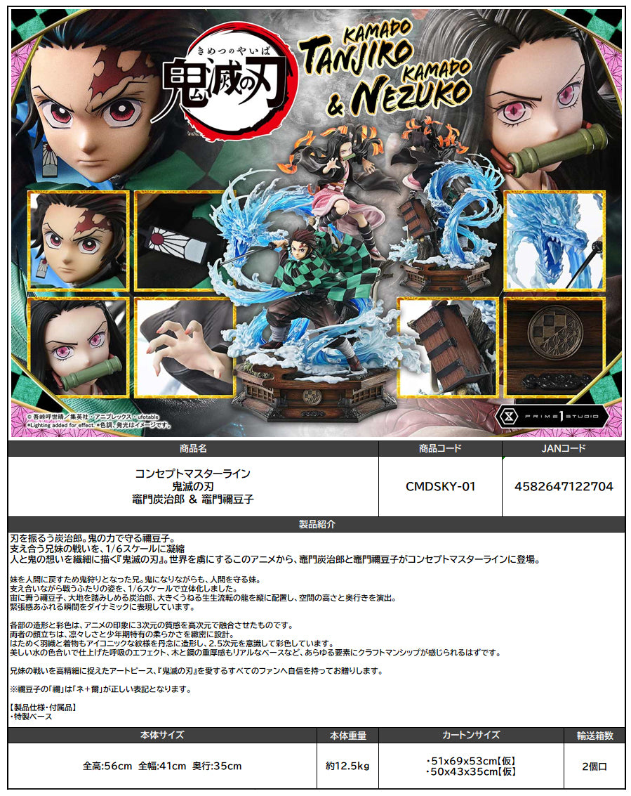 "Demon Slayer: Kimetsu no Yaiba" portrays the fragile yet powerful emotions of humans and demons alike. From this beloved anime that has captivated the world, Kamado Tanjiro and Kamado Nezuko join the Concept Masterline series.