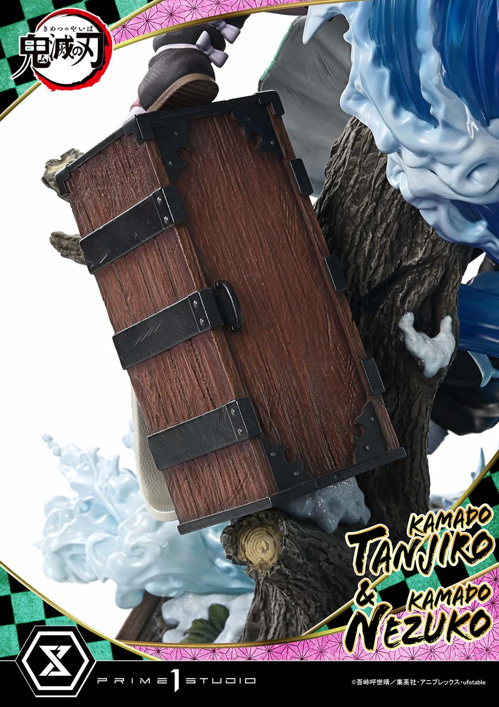 Every sculpted detail and every layer of paint merges the impression of the anime with the tangible qualities of three-dimensional form. The portraits of both Tanjiro and Nezuko are intricately crafted to convey their dignified presence while retaining the gentle softness of their youth. Their flowing haori and kimono are carefully sculpted with iconic patterns, painted with a "2.5D" approach that preserves the anime aesthetic. The breathing effect, finished in beautiful water tones, along with the heavy realism of wood and steel on the base, showcase the craftsmanship invested in every element.