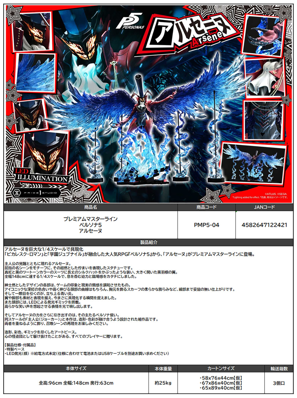 From the hit RPG that blends picaresque romance with school juvenile drama, "Persona 5", comes Arsène—now joining the Premium Masterline series.