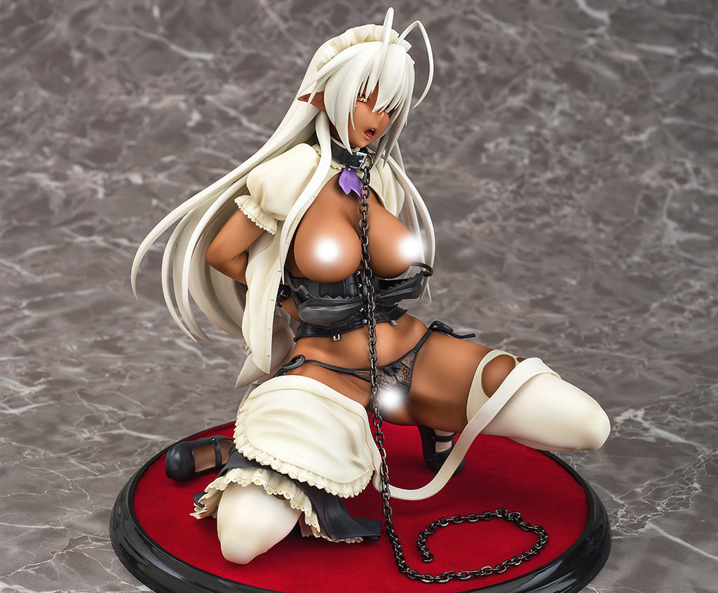 Featured in the official "Wicked Mind" anthology disk for the dark hack and slash adventure game "Full Metal Daemon Muramasa" by Nitroplus, we present this figure of Masamura Sansei in a provocative maid outfit. Her hands are tied behind her back, her breasts spill out of her open shirt, and her face is tinged with lust.