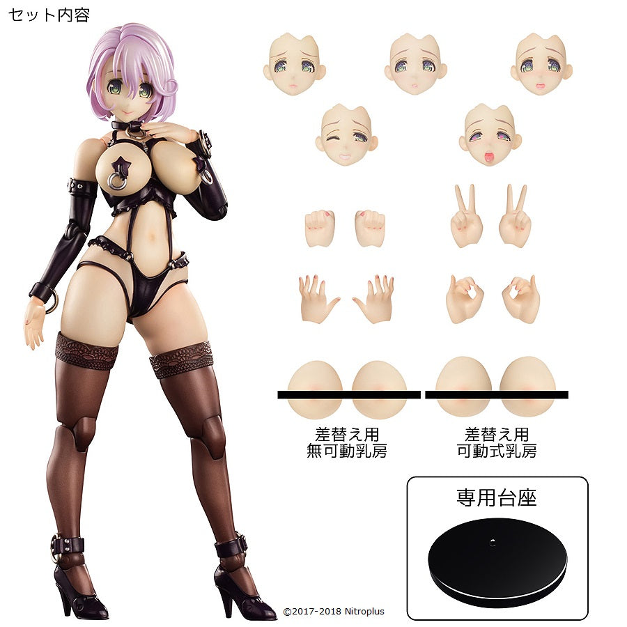 It has the abundant attached parts which contain five sorts of expression parts, such as the acme face and the "movable breast".