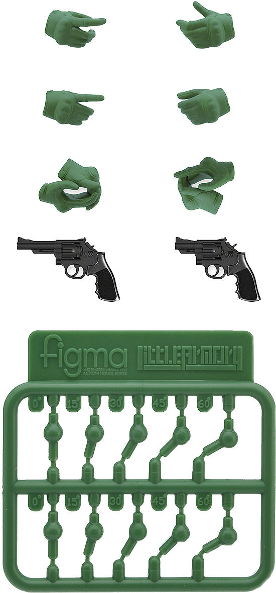 The set includes a combined left and right hand part for displaying your figma holding a handgun with both hands, hand parts for displaying your figma holding guns with angled grips and more, making it easy to display your figma with a wide variety of guns when paired with one of the previous handsets. The set also comes with runners for creating two 9mm auto pistols. Enjoy pairing with your Little Armory figma figures, figma Styles figures and more!