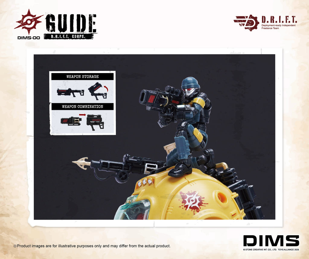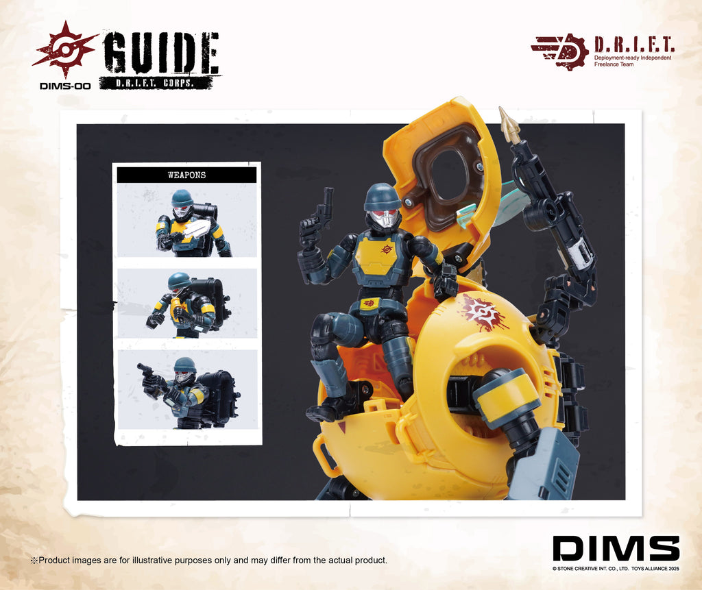 Under the production of TOYS ALLIANCE LIMITED, here we bring you the 1/18 scale SF action toys of "DIMS" series! DIMS is a series about drivers and their armor units. It shows their strong bond and fighting style through unique designs and movements. Please look forward to the more releases from DIMS!