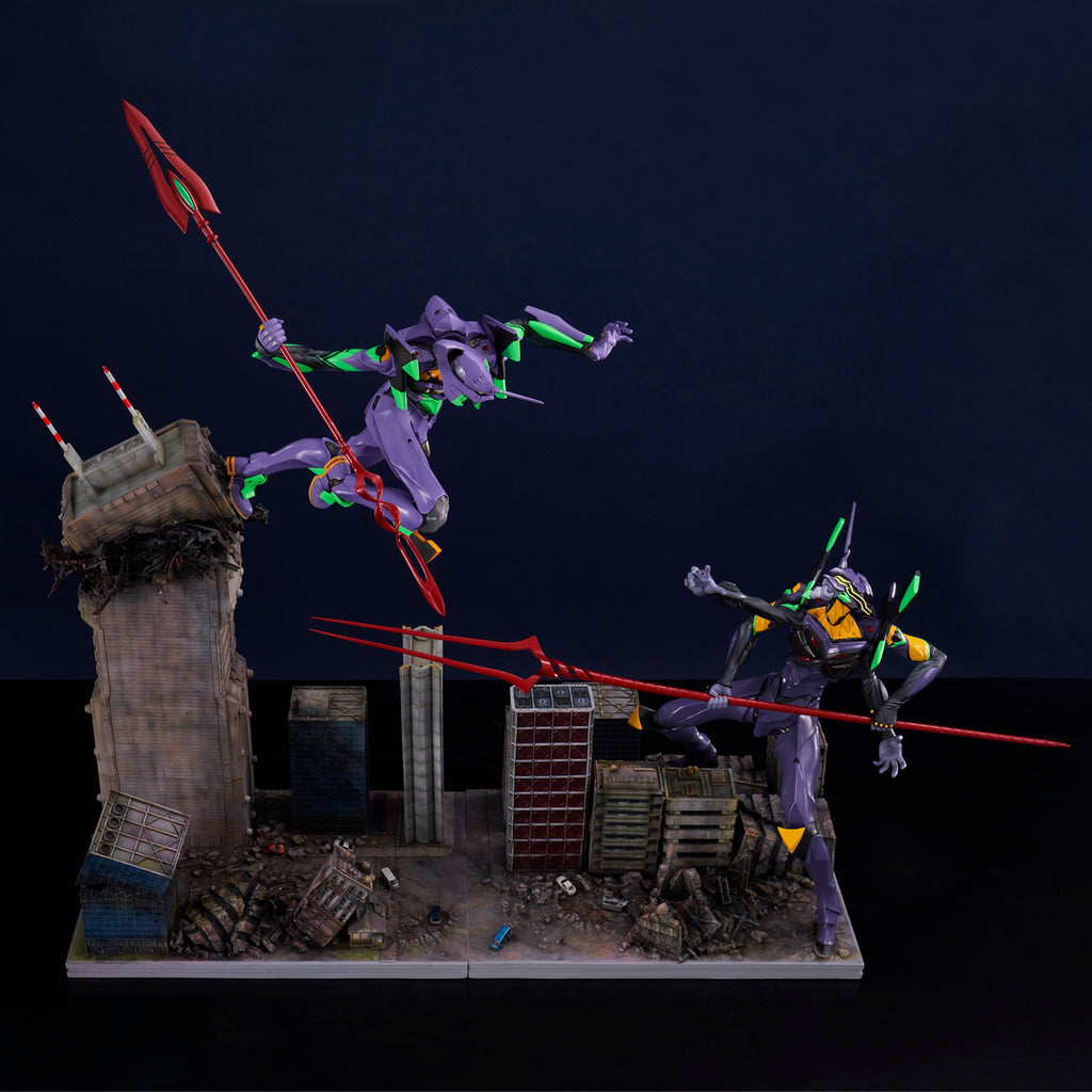 While emphasizing dynamic poses to recreate the sense of motion from the original scene, we have included Cassius' Spear for EVA Unit-01 and the Longinus Spear for EVA Unit-13. This high-quality artistic masterpiece has been meticulously finished, showcasing an exceptional level of completion.