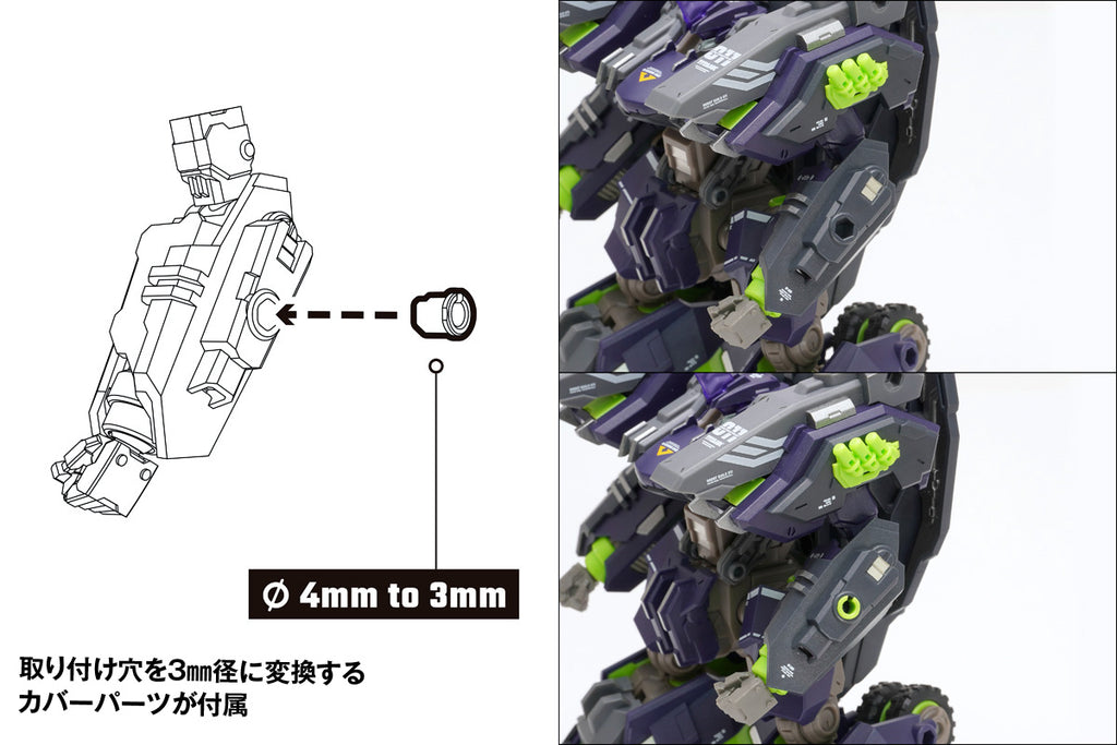 Comes with cover parts that convert the mounting holes of each part to a diameter of 3 mm.