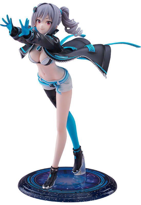 From "THE IDOLM@STER CINDERELLA GIRLS" comes a 1/7 scale figure of Ranko Kanzaki from Luminous Azur Duo! The figure features Ranko dancing to the rhythm of "Dance Dance Dance". The details of her Dance On The Galaxy outfit been faithfully captured in figure form, from acessories such as her gloves to her shorts and belts. Ranko's fluttering jacket adds a sophisticated flair to the pose, whilst also emphasizing her slender physique. The neon blue details add an electric and stylish touch to the mainly black-and-white outfit, and give off a blue glow when under black light. Be sure to add the charming and adorable Ranko to your collection!
