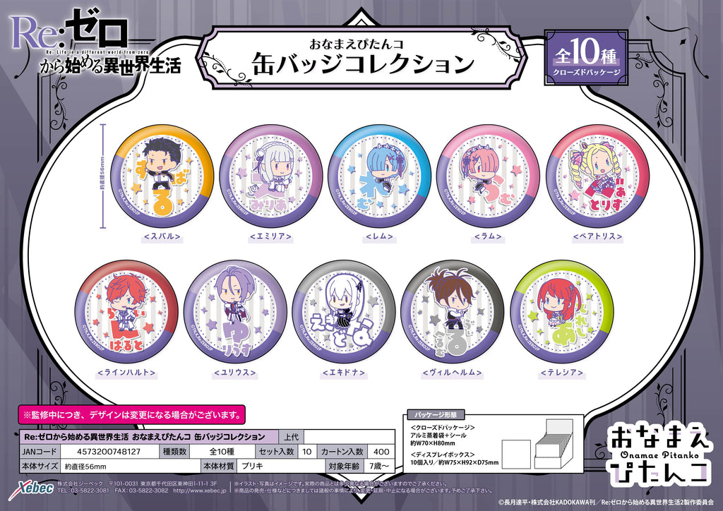 Re:Zero kara Hajimeru Isekai Seikatsu XEBEC Onamae Pitanko Can Badge Collection