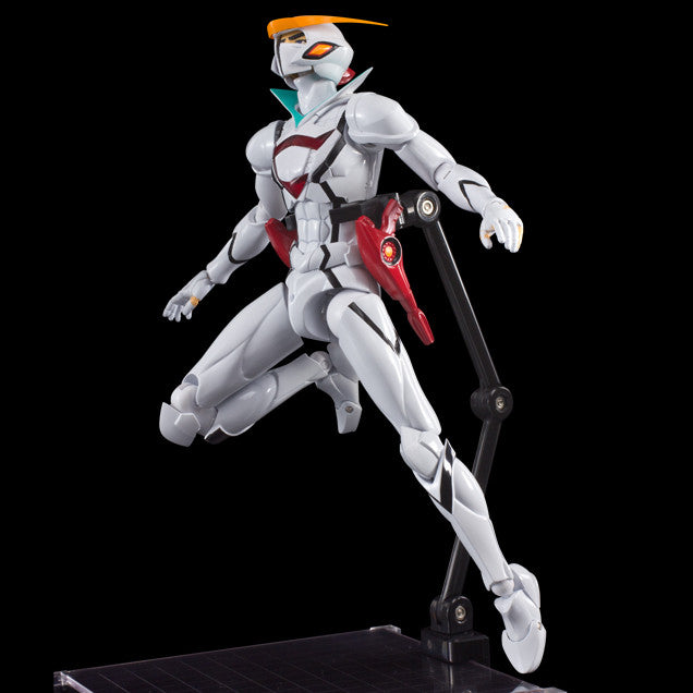 The second line-up is Casshan! Even with the simple articaltions, his signature poses in animation could be presented. The figure stands approximately 18cm and includes die-cast parts with weightiness. A LED is built-in on chest so his symbol mark can lighting-up.