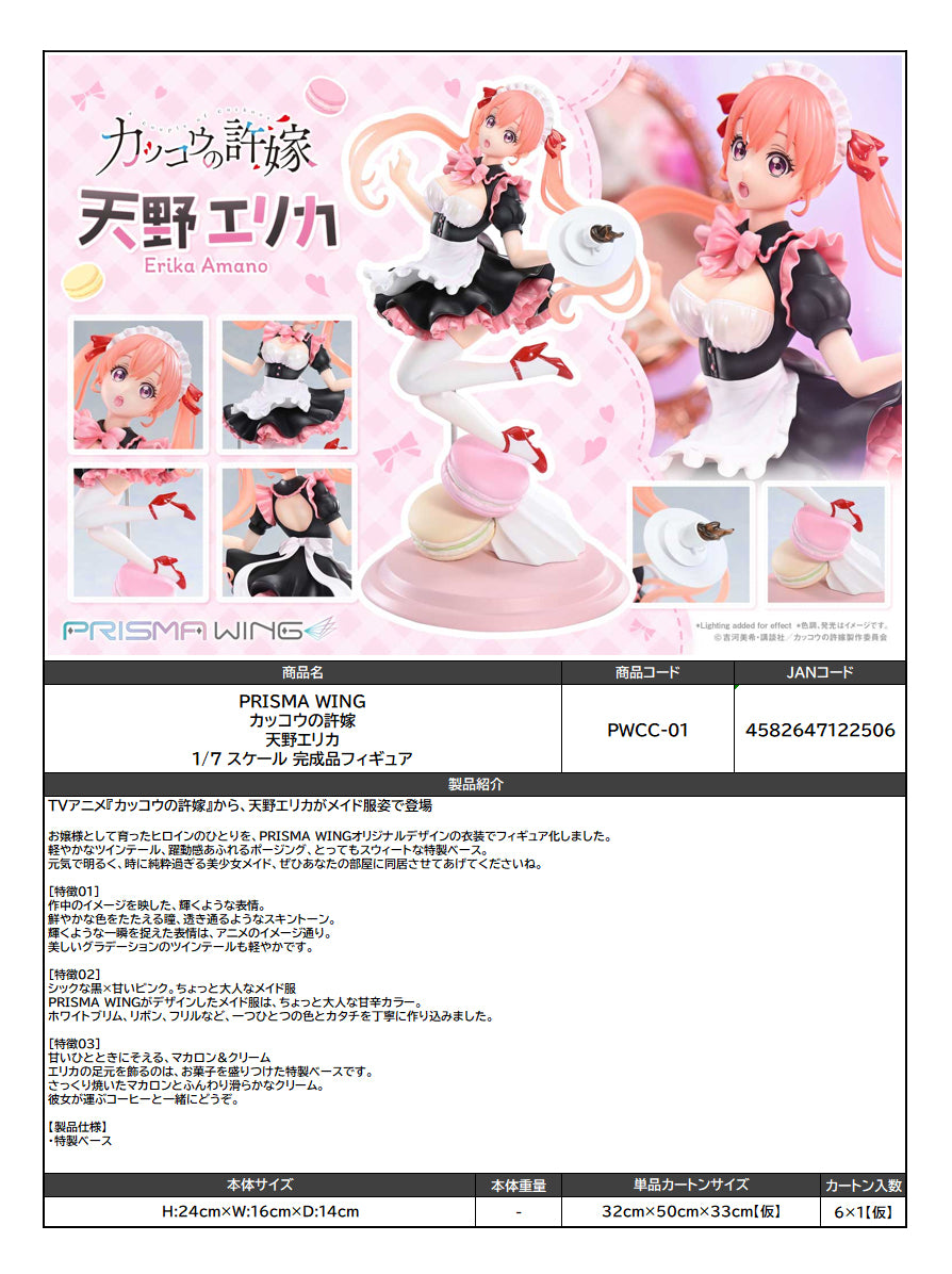One of the heroines raised as a refined young lady is brought to life as a figure in a PRISMA WING original costume design. Her light twin tails, dynamic posing, and a specially crafted base that is as sweet as she is—all capture her charm. Bright, cheerful, and sometimes innocent to a fault, this beautiful maid is ready to share a place in your room.