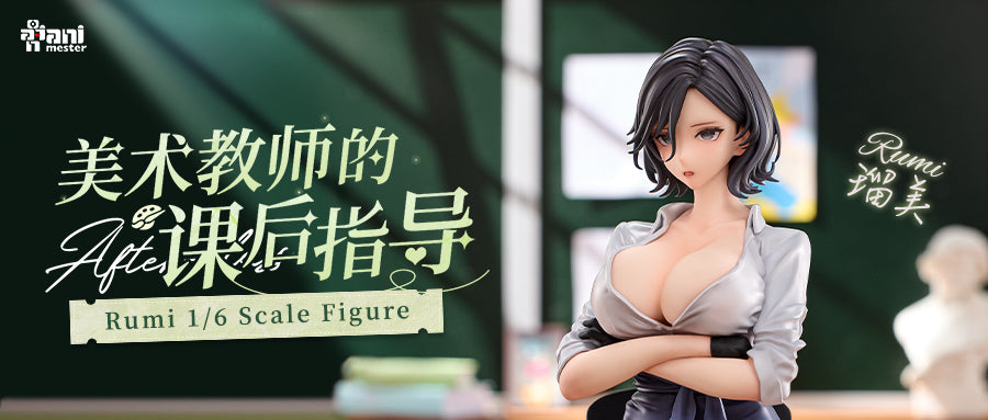 Planned and produced by Animester, the original character 'After-School Art Instruction—Rumi' by illustrator Kesoshirou are now available as 1/6 scale figure! Her short hair gives her a sharp look. The rolled-up shirt highlights her thin waist. Her skirt has natural wrinkles that follow her crossed legs, disappearing in a way that seems to invite you into a secret area you cannot see...PVC, ABS