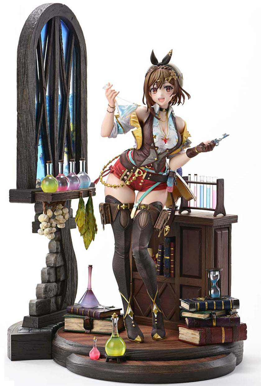 A girl who once left behind an ordinary life through encounters with friends and alchemy is brought to life at 1/4 scale, capturing her matured figure from her final summer story. The pose, with one hand resting on her knee as she leans forward, reflects the approachable charm felt throughout the game. The base is themed after the Atelier, the hub of her adventures, designed as a vignette to awaken treasured memories.