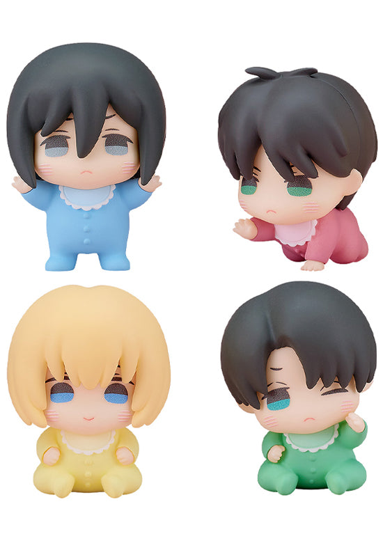 From the recently concluded anime "Attack on Titan" comes new baby-like chibi figures of Eren Yeager, Mikasa Ackerman, Armin Arlert and Levi! The body and head parts of the figures are interchangeable. Be sure to add them to your collection!