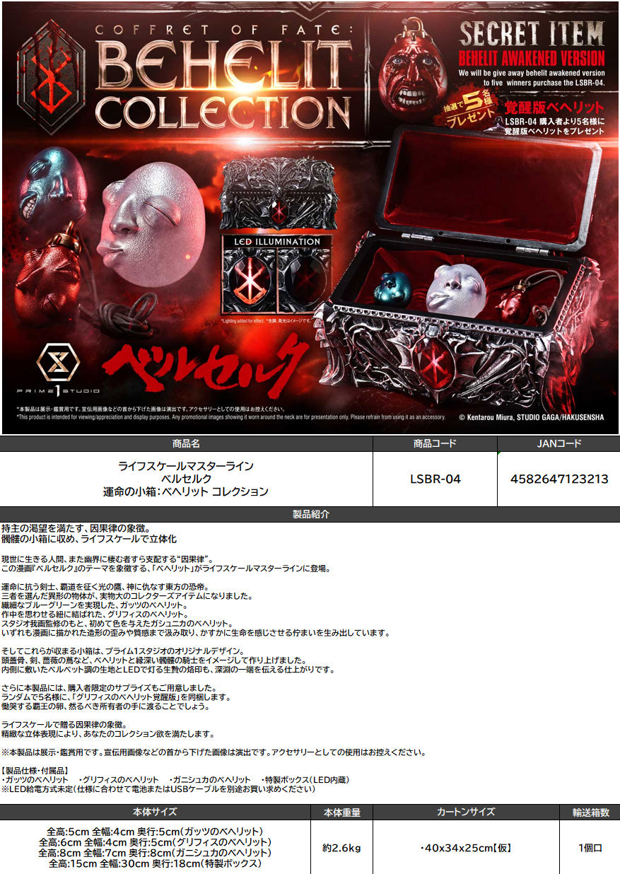 As a special surprise for purchasers, five randomly selected customers will receive Griffith’s Behelit (Awakened Version). The weeping Egg of the King will surely find its way into the hands of those meant to receive it.