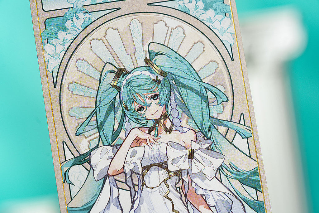 The commemorative ticket features a special translucent background. When light passes through the stained glass behind Miku, the ticket turns into an inspiring and impressive display before your eyes. Be sure to add the benevolent smiling Miku to your collection!