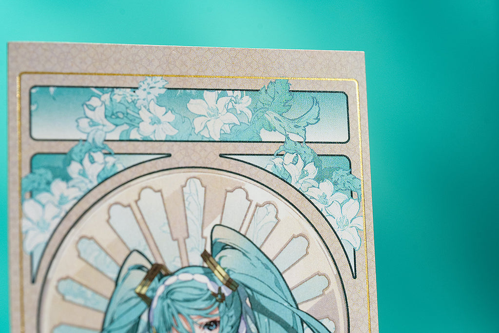 Introducing merchandise featuring Hatsune Miku feat. Yoneyama Mai! Hatsune Miku, as designed by illustrator Yoneyama Mai, is now a collection of merchandise. Miku is dressed in a goddess-like outfit with a beautiful background. The unique atmosphere of the original illustration has been faithfully captured through the combination of high-resolution printing and elaborate manufacturing techniques.