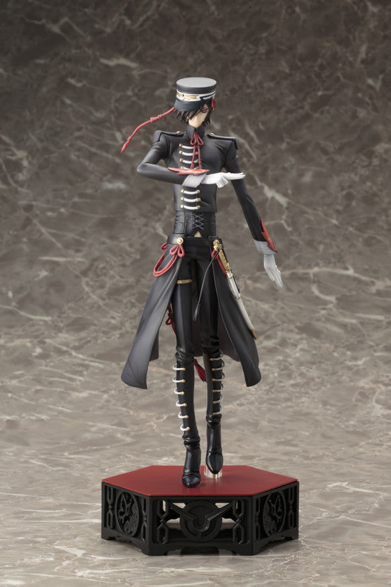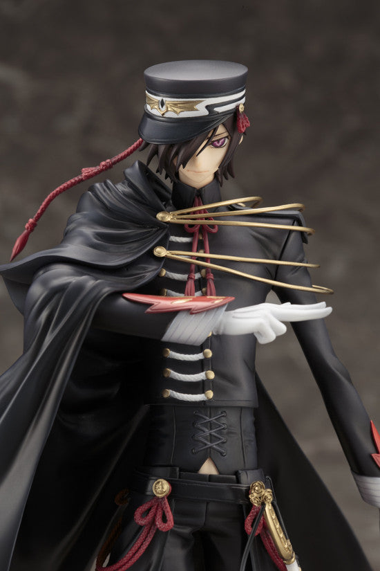Kotobukiya proudly presents Lelouch from the popular Code Geass Code Black 1st Live Encore!Lelouch stands nearly 25 cm (9.8 inches) tall.Beautifully sculpted statue stands on a decorated base to complete the theme.