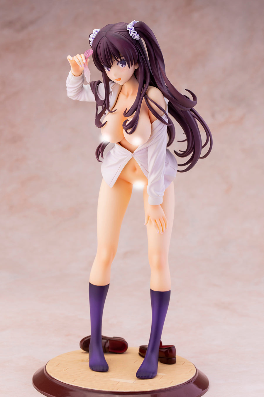 From master Kurehito comes the cover illustration of Comic Aun's character Yuzuki Kanna. With the pink condom item between her finders in her school outfit pose. With her charming smile and allurging composition with careful details in her hair and beautiful skin as depicted in the illustration. This popular figure with it's removable bra can be posed in any position to be enjoyed.