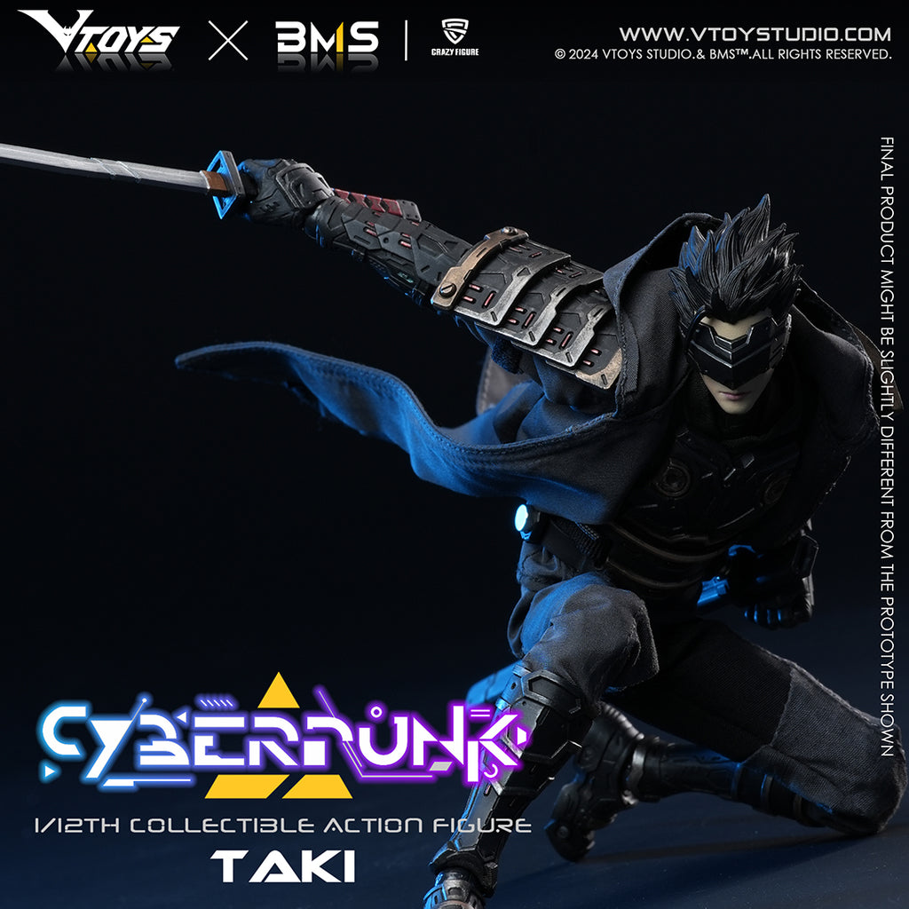 Designed and produced by manufacture VTOYS, we are glad to bring you this 1/12 scale action figure "SAMURAI TAKI" from "Cyberpunk" series! VTOYS is renowned for its excellent articulation, intricate sculpting, smooth lines, and beautiful shapes. The black design mixes Cyberpunk style with traditional Japanese aesthetics, making it really stand out. Hope you enjoy this cool item!