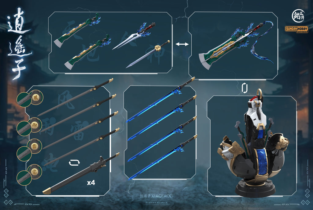 Planned and produced by the new manufacturer MJZ STUDIO, here comes a plastic model kit based on the character "Xiaoyaozi" from the Chinese Wuxia novel "Demi-Gods and Semi-Devils"! Traditional Chinese design elements such as his distinctive hat and gourd are exquisitely fused with modern mechanical aspects. Featuring a metal inner frame, it achieves outstanding stability, allowing you to enjoy dynamic posing! Make sure not to miss out!