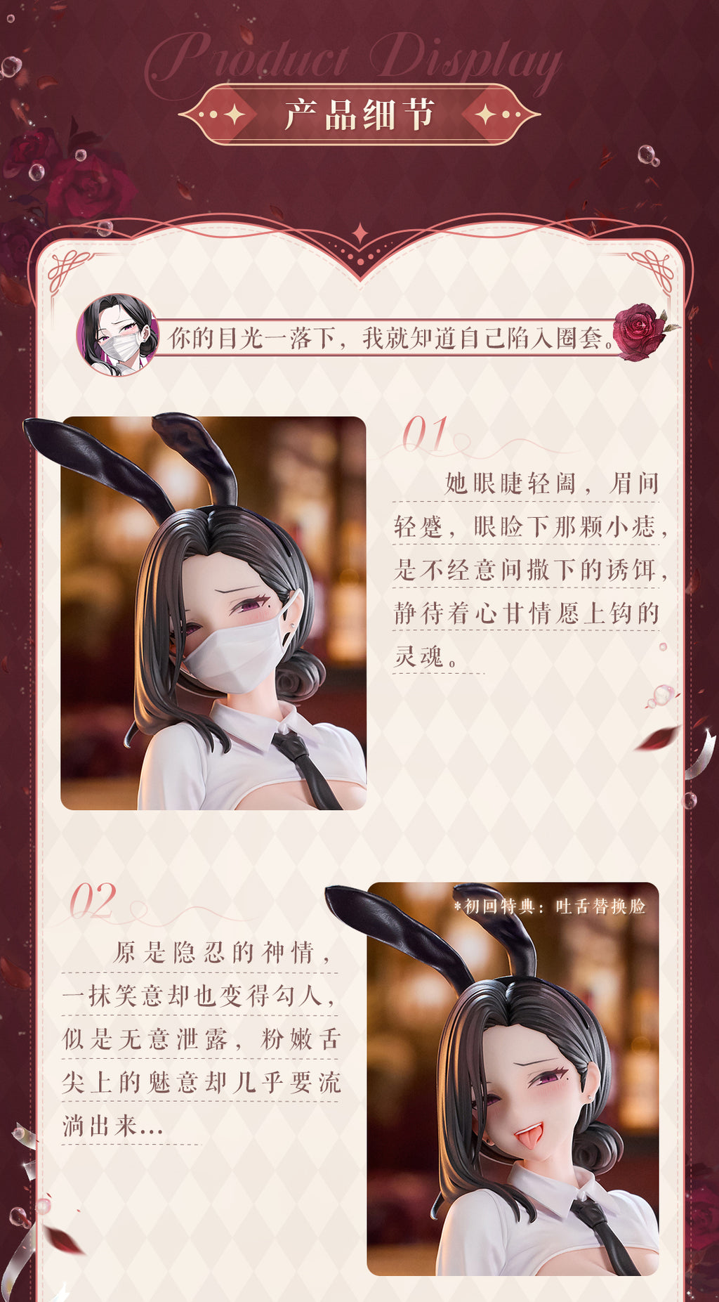 Planned and produced by Animester,the characters "Dongtan Bunny Girl"drawn by illustrator K Pring are now available as 1/6 scale figures! Her pure black bunny suit highlights her beautiful body line. The way she gently places her right hand on her heel creates an elegant and charming look.