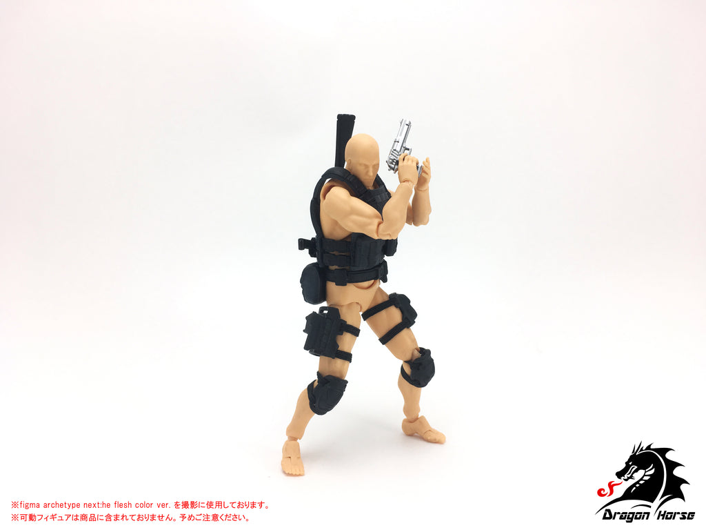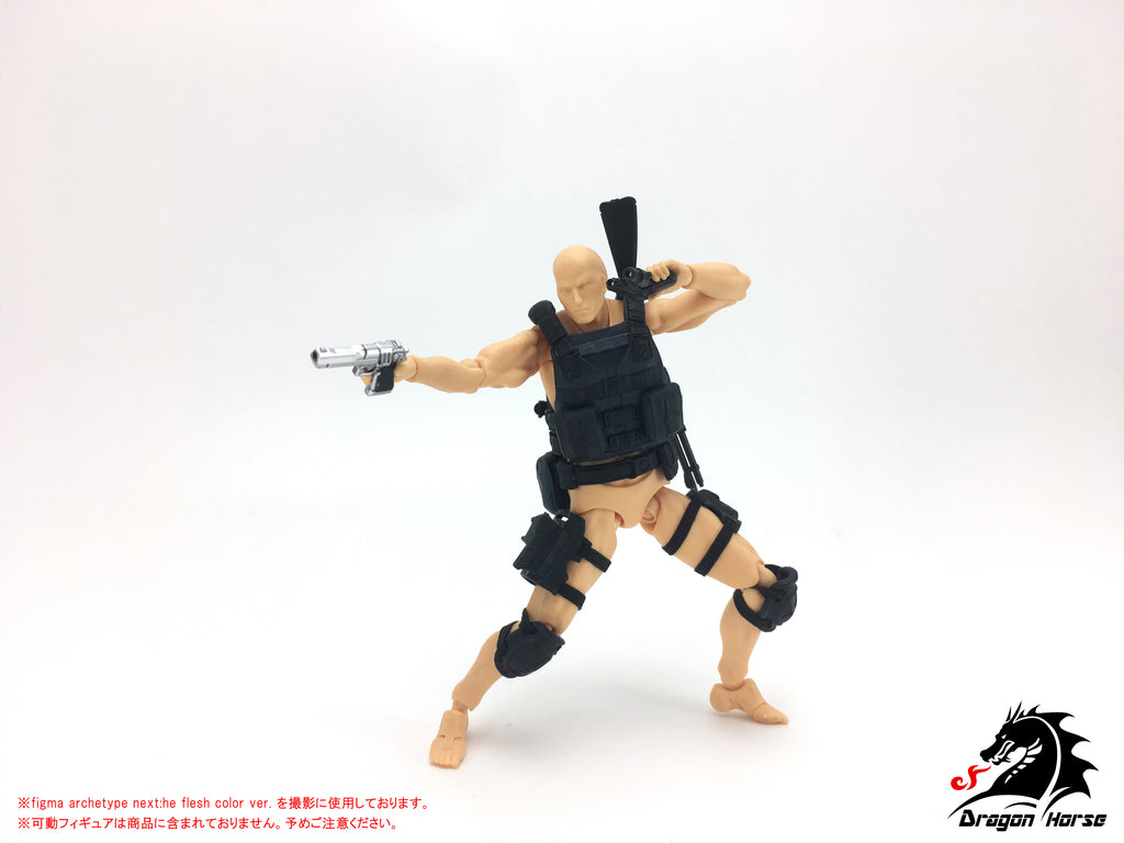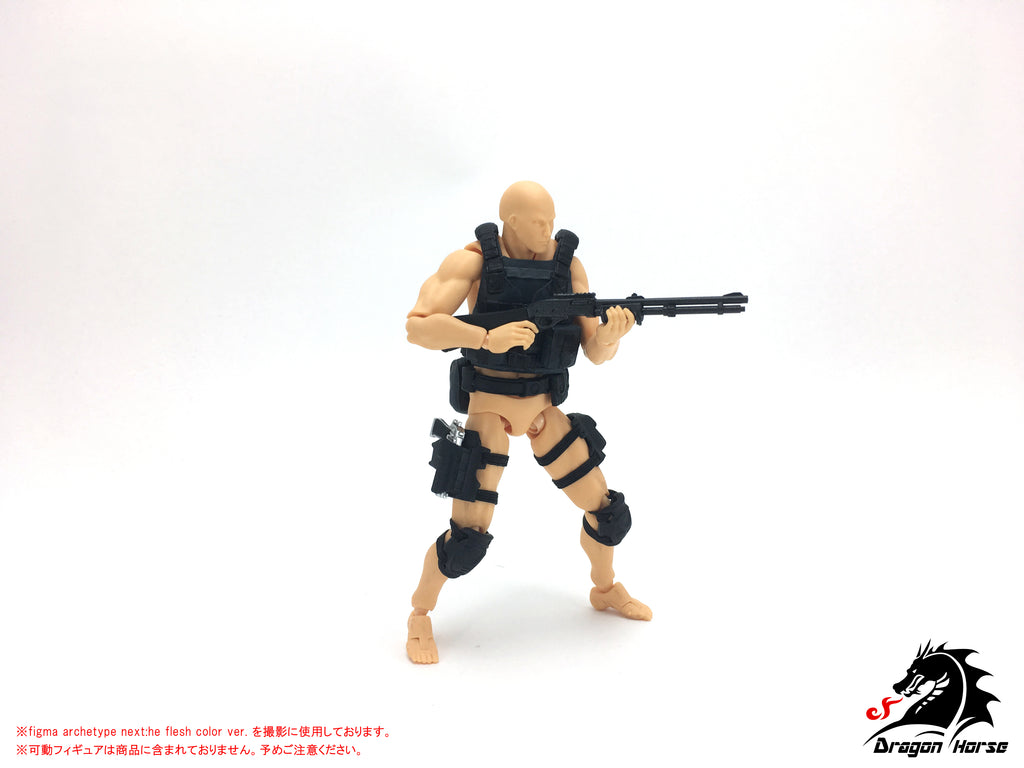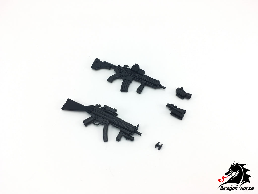 These are military style equipment sets containing weapons such as assault rifles and handguns, as well as normal gears such as tactical vest and leg pouches. There are two different sets, Set-A "Assault" has more firepower while Set-B "Ghost" is more suitable for infiltrate operations. We've also prepared abundant accessories for the main weapon, HK416 assault rifle, to offer enough room for your customizations. Last but not least, elastic cords are used on the leg pouches and knee pads so that they can be used on all kinds of 1/12 scaled figurines.