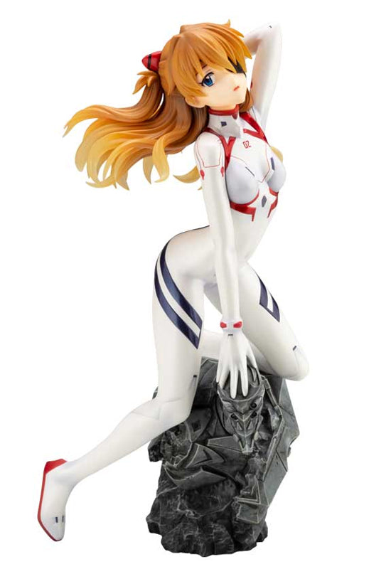 As seen in EVANGELION:3.0+1.0 THRICE UPON A TIME, this 1/6 scale statue of Asuka is depicted with the new white plugsuit she dons before the final battle.