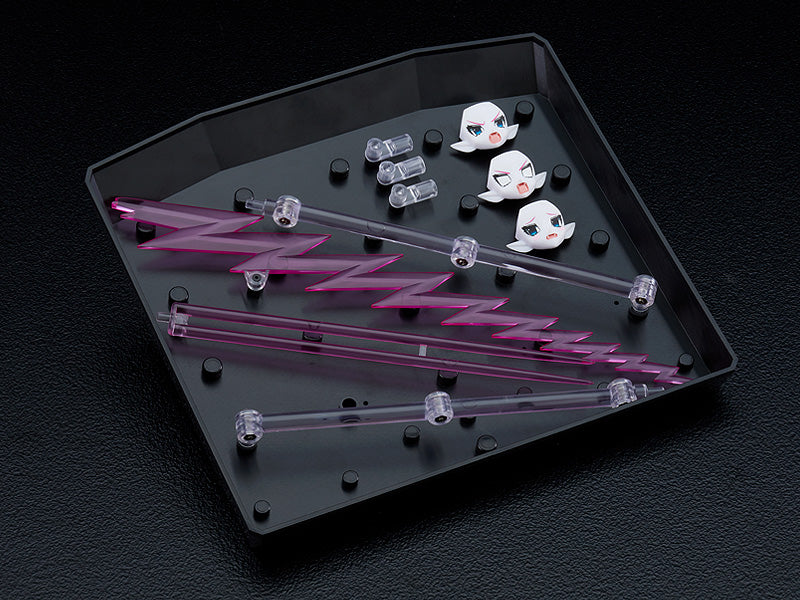 Four interchangeable face plates including a standard face, a shouting face, a blushing face and a beam face are included. Additionally, various equipment parts and effect parts are included to recreate action-packed battles from the game. As a HAGANE WORKS action figure original feature, her equipment parts can be combined in order to create the Steel Demon Dragon Wyvern! Be sure to add her to your collection!